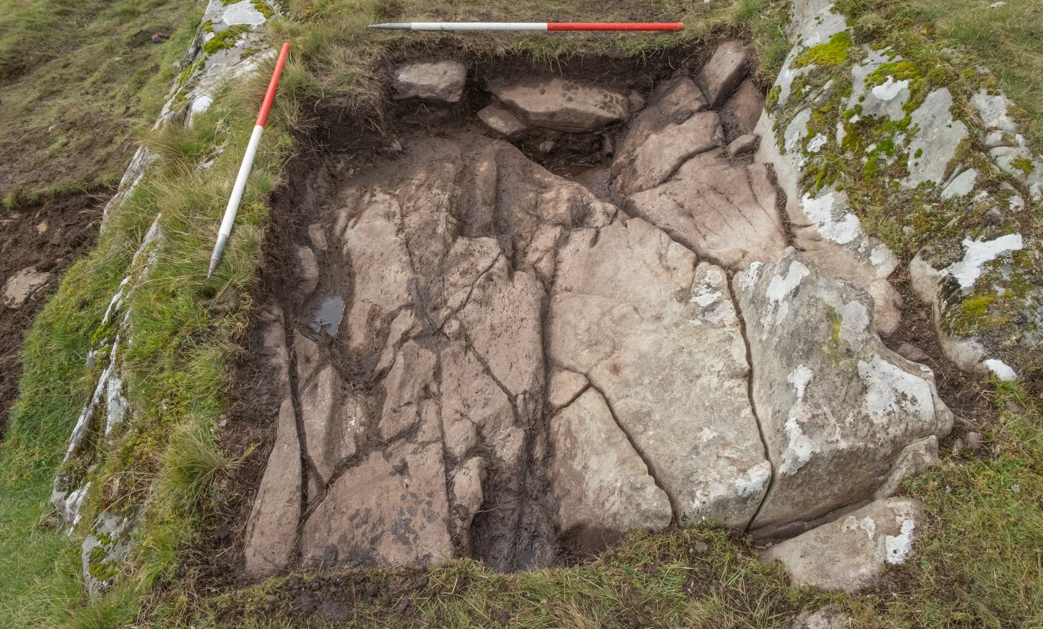 Soon after the removal of the turf started, previously unknown cup marks were revealed on a spur of rock.
