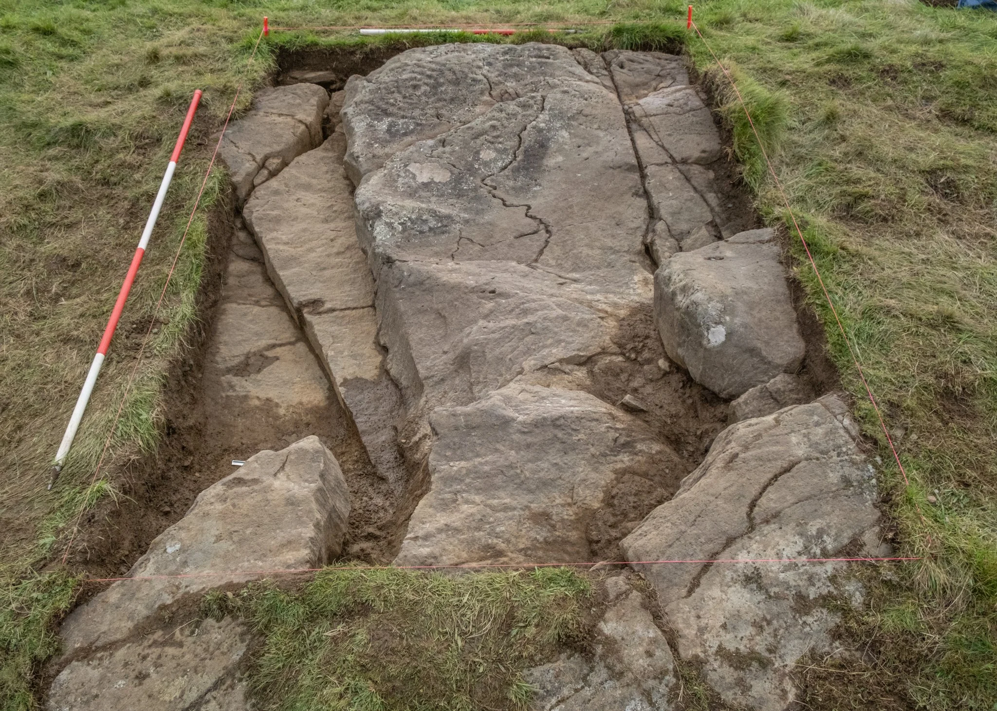 The largest trench at Site 1 defined the edges of the carved outcrop and investigated fissures on and around its surface.