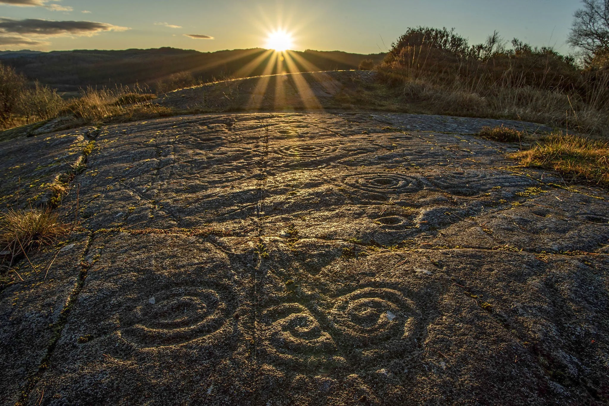 Above: The enormous outcrop at Achnabreck is aligned towards the midwinter sunset (Photo: Aaron Watson)